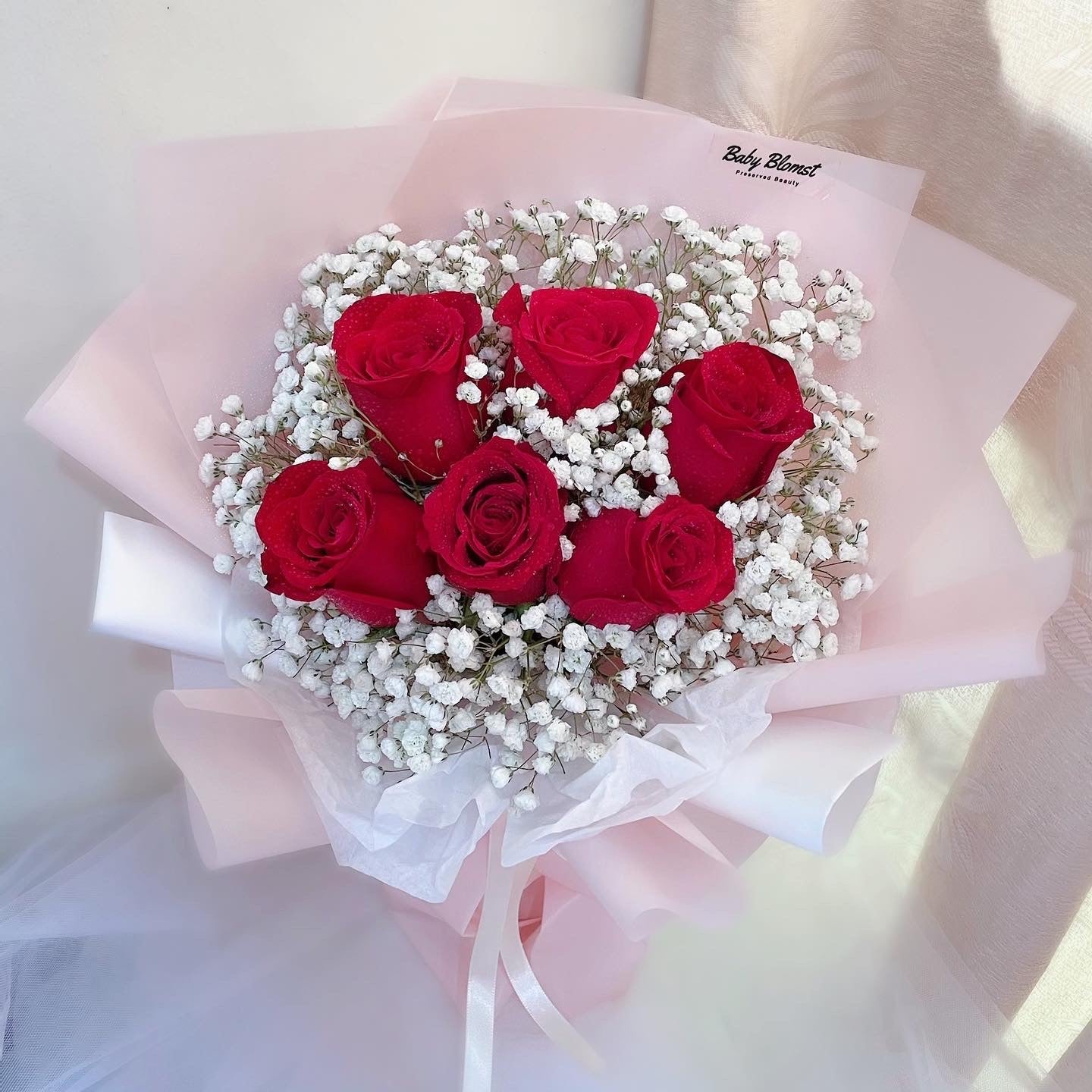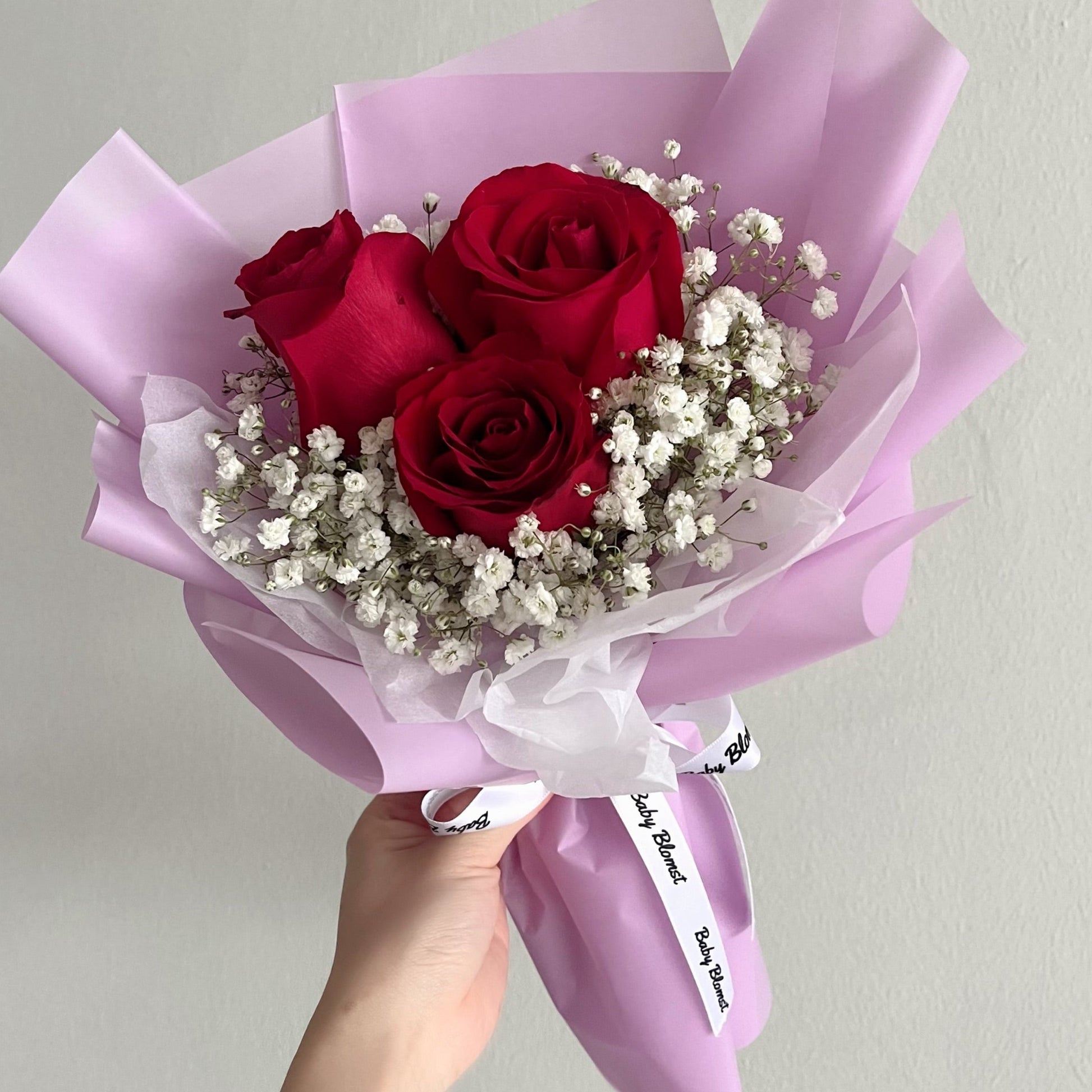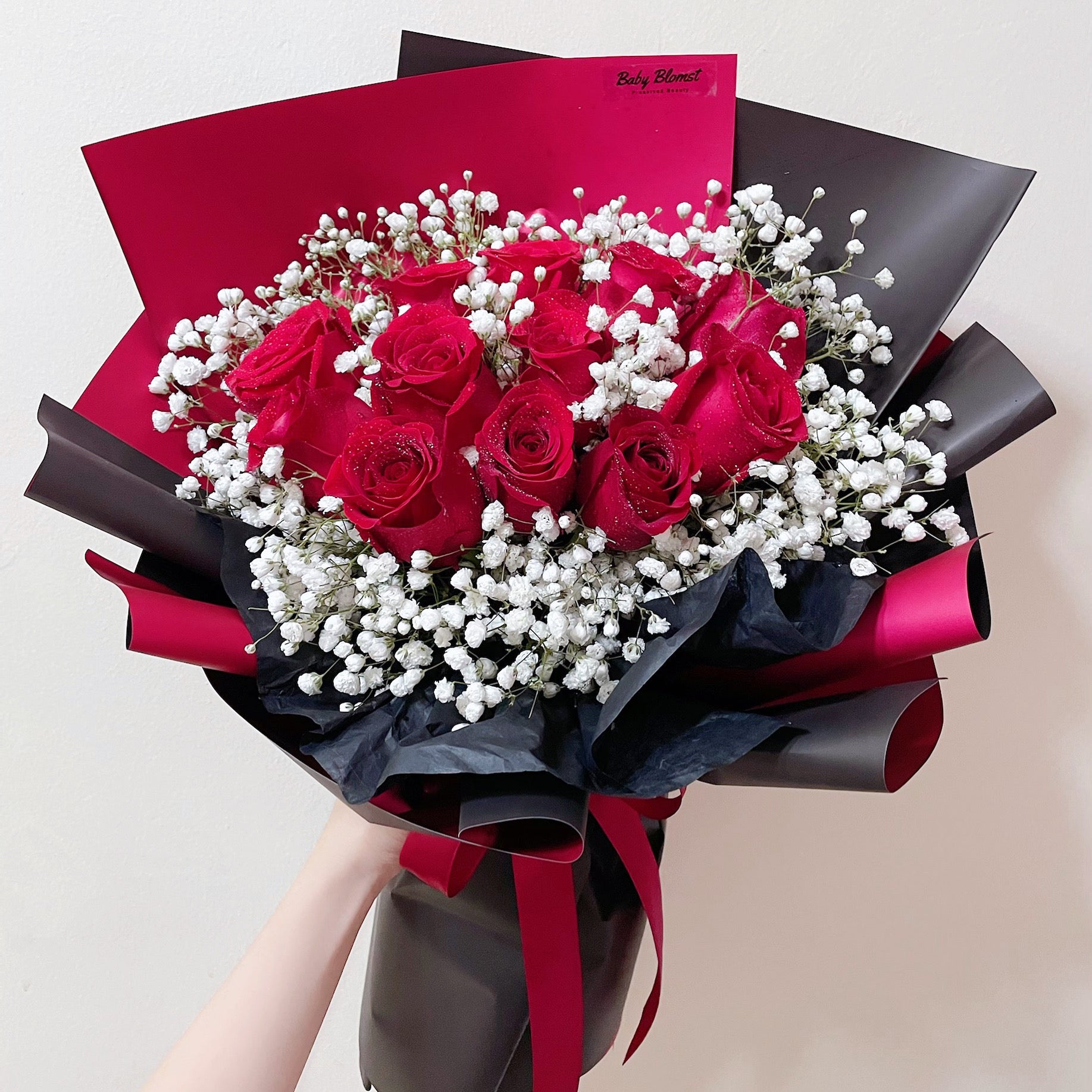 This Product Includes: Fresh red rose and baby breath.